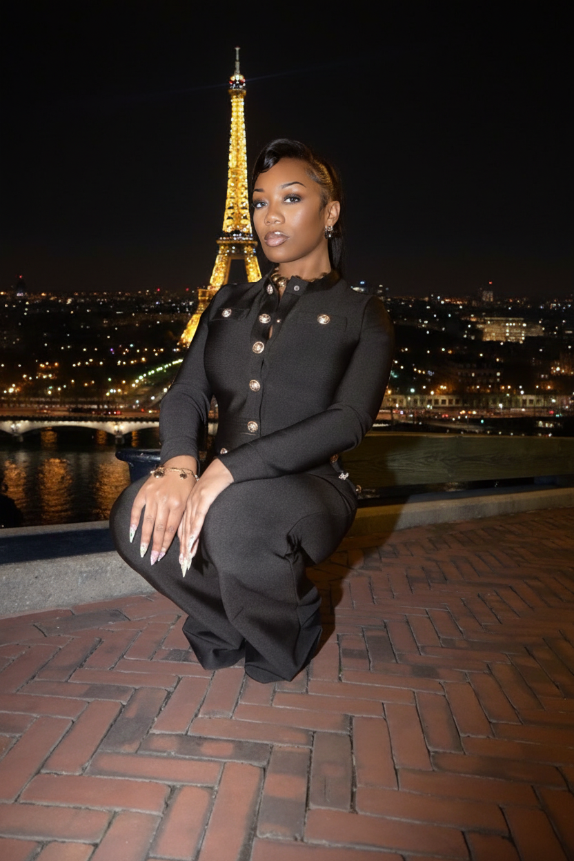 The Balmond Cropped Top delivers a sleek, elevated look with its fitted silhouette and statement gold-toned buttons. Designed to contour the upper body with clean, structured lines, it pairs sophistication with modern minimalism. The long sleeves and tailored shape make it a versatile piece that transitions effortlessly from evening outings to upscale casual settings, and it pairs especially well with the Balmond Bootcut Bottoms for a polished, cohesive look